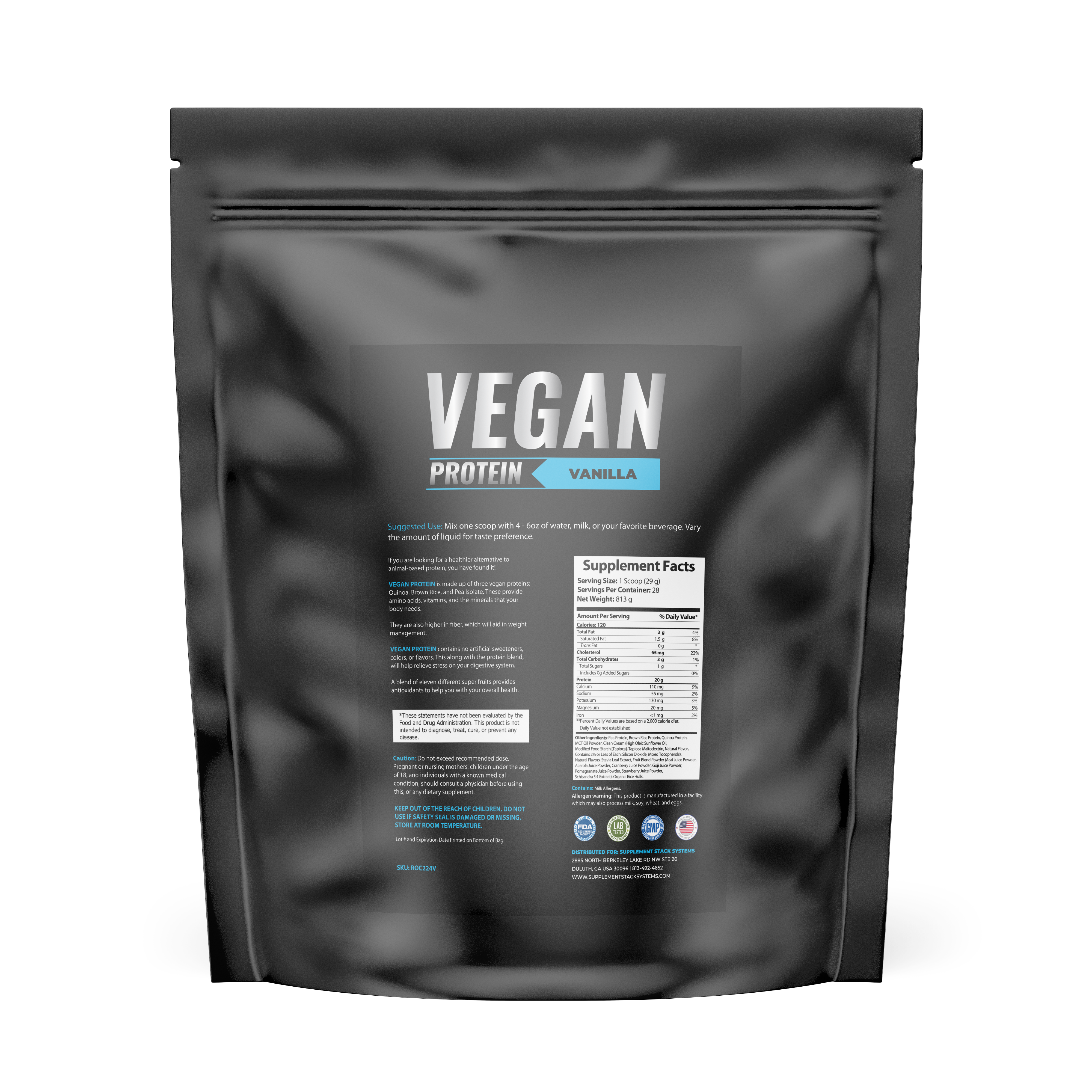 VEGAN PROTEIN is made up three vegan proteins: Quinoa, Brown Rice, and Pea Isolate. These provide amino acids, vitamins, and minerals that your body needs when building/rebuilding muscle.