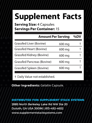 Scientifically formulated using the latest research, our product features optimal ratios of grass-fed beef organs, carefully selected to deliver exceptional benefits. Whether you're seeking sustained energy, improved digestion, enhanced exercise performance, a fortified immune system, sharper cognitive function, balanced thyroid health, or overall well-being, our Grass Fed Beef Organ Complex is here to support you.